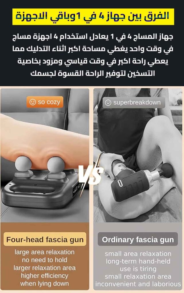 جهاز تدليك الأنسجة العميقة يعتمد تقنية فريدة من نوعها للربط بأربعة محاور ، والتدليك أعمق ومنطقة التدليك أكبر. يمكن لمسدس التدليك الإيقاعي قرع 60 مرة في الثانية ، وعمق التدليك كبير . جهاز التدليك الاهتزازي من خلال اهتزاز عالي التردد ، يمكنه استرخاء اللفافة العضلية بشكل فعال ، مما يجعل العضلات ناعمة وممتدة.