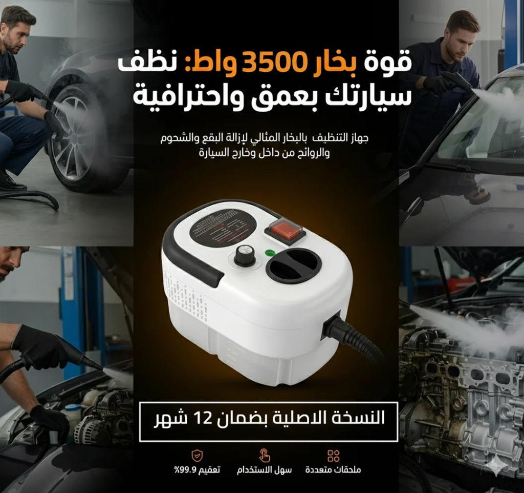 -بخار قوي ينضف من غير ما يغرق الموتور مياه