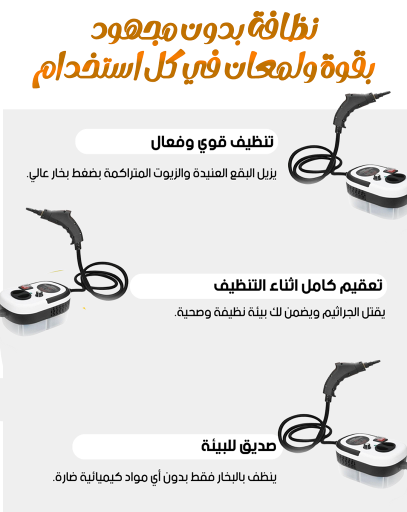 -بخار قوي يقتل البكتيريا ويشيل الروائح